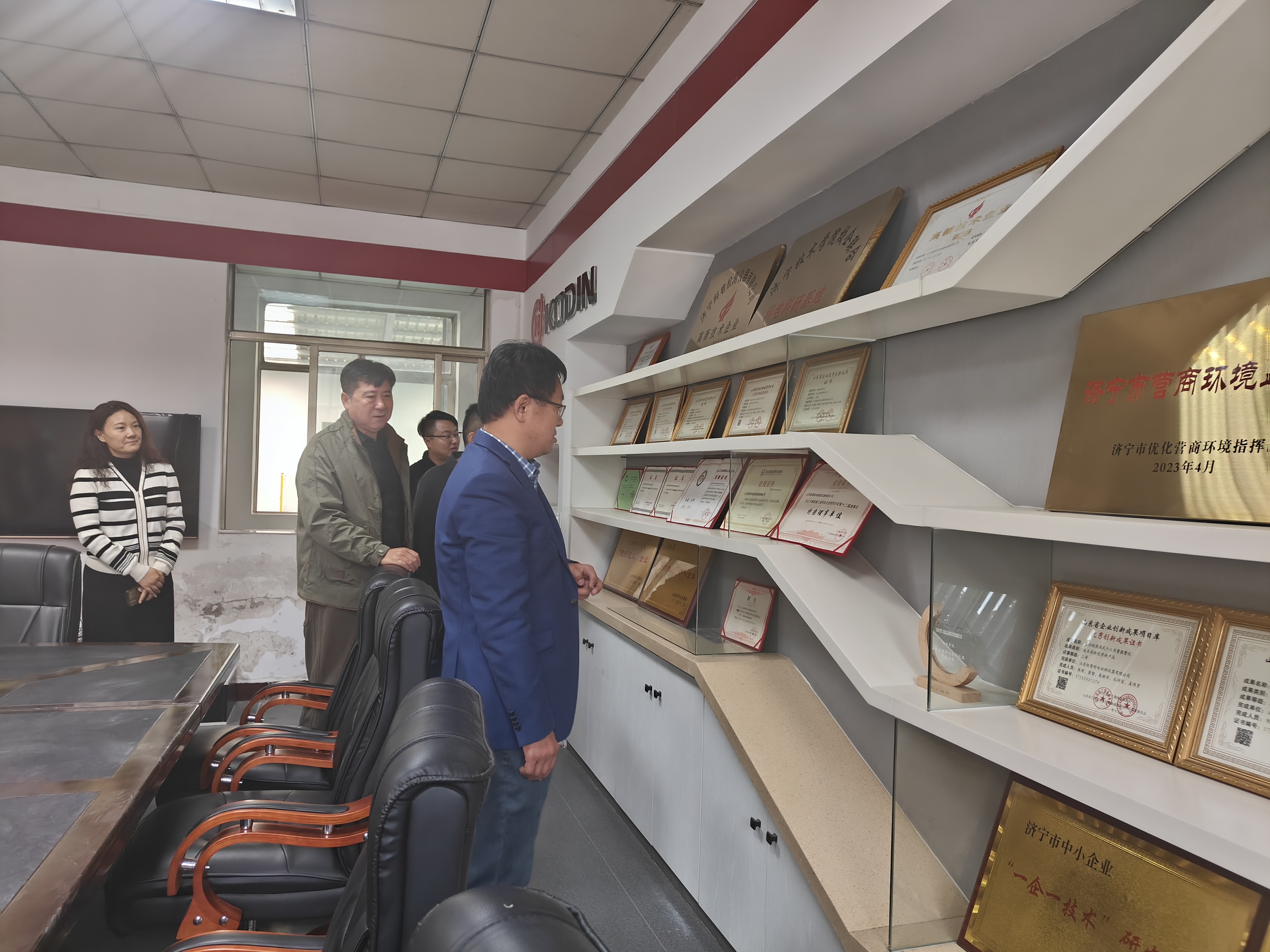 在榮譽室,領(lǐng)導(dǎo)們駐足查看企業(yè)獲得的各類資質(zhì)認證與榮譽獎項,直觀感受科電儀器的行業(yè)認可度;